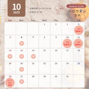 10 012025 10月営業日のお知らせ この記事のタイトルとURLをコピーする いつもWERKSTATT OHZEKIをご利用くださいまして誠にありがとうございます。 10月の営業日並びにお休みの予定をお知らせいたします。 カレンダーを確認の上、ご来店心よりお待ちしております。 Tweet Share Hatena Pocket RSS feedly Pin it この記事のタイトルとURLをコピーする 9月営業日のお知らせ 前の記事